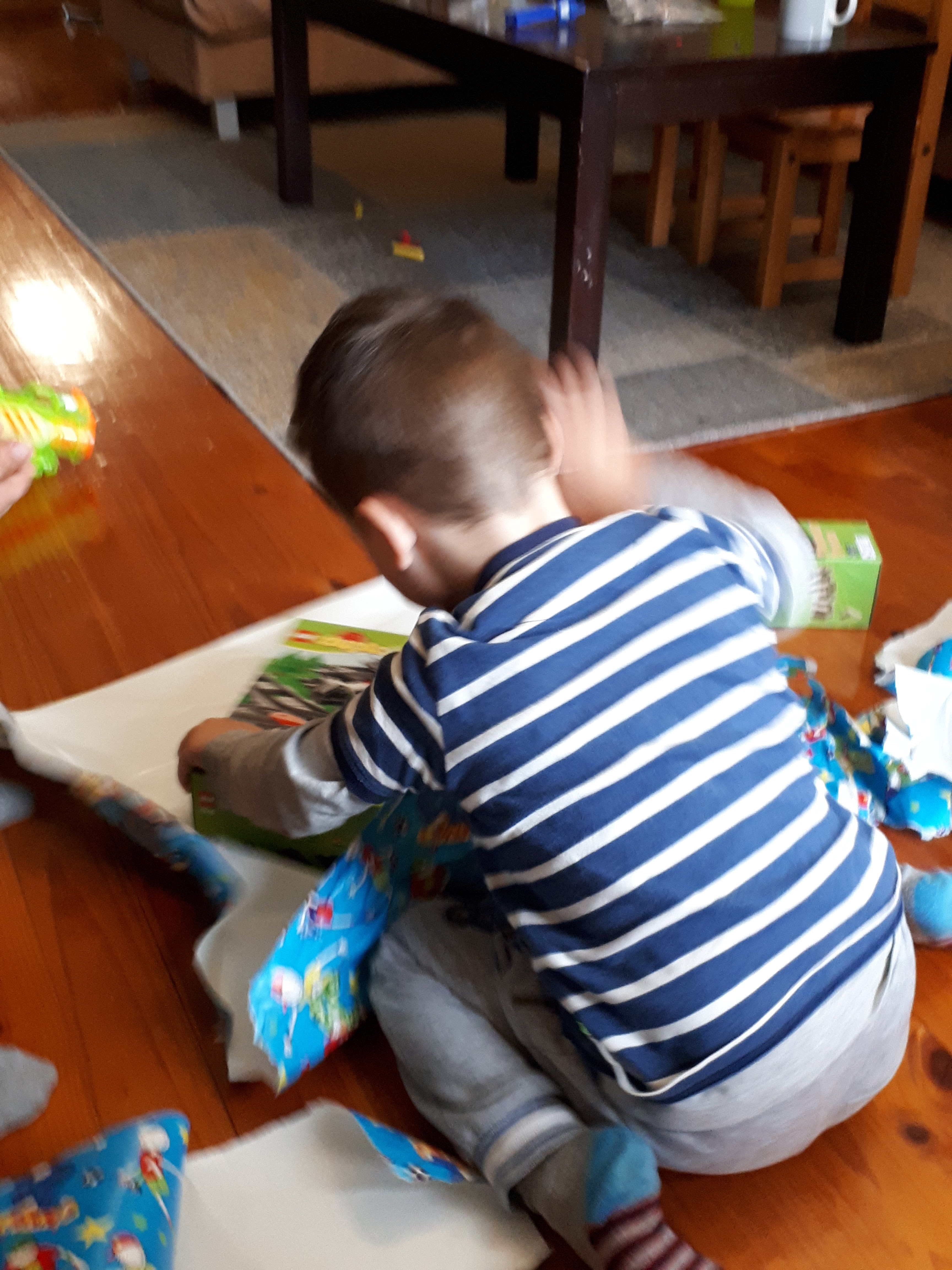 Birthday boy unwrapping presents