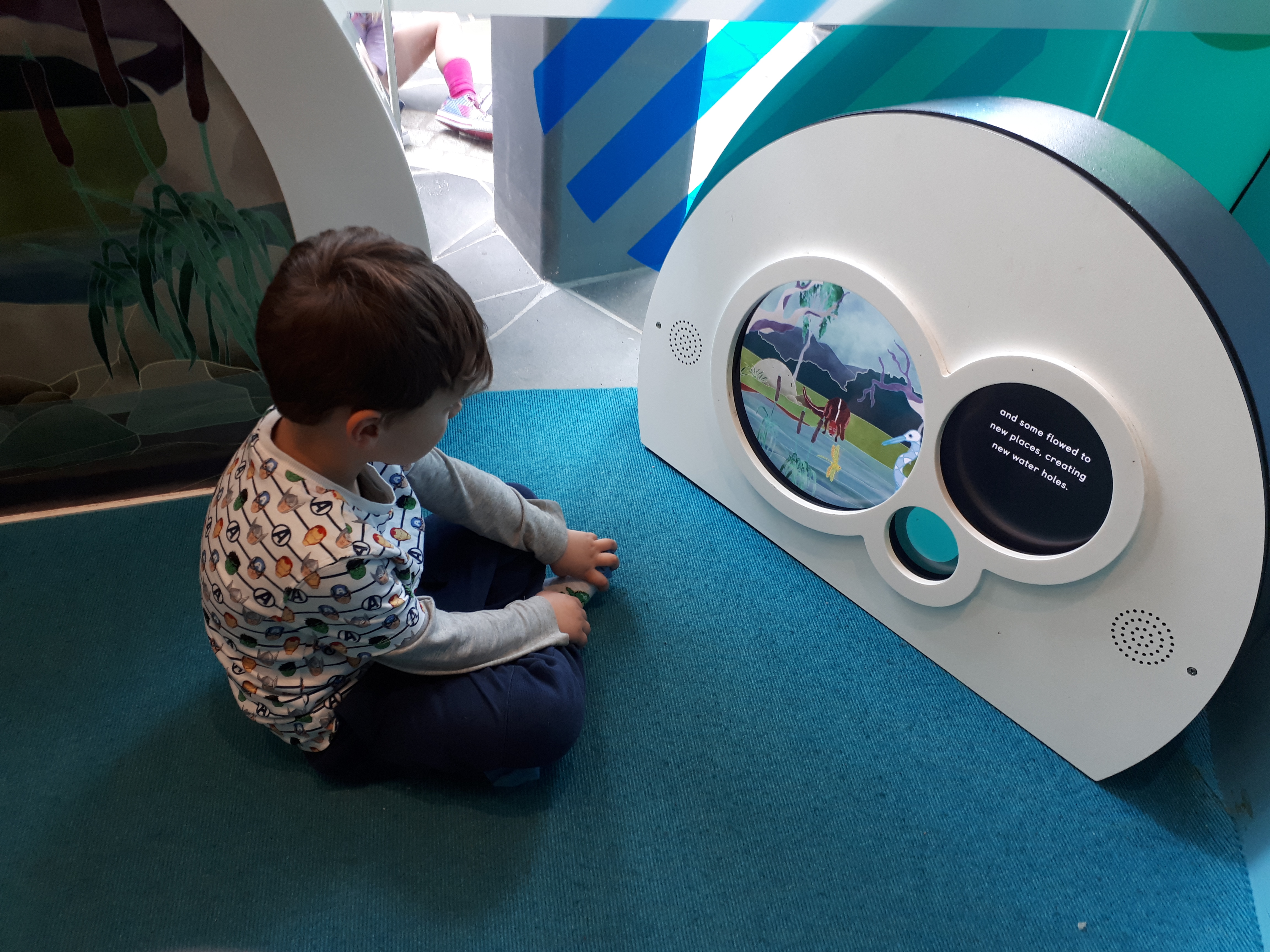 • Visited museum. Kids went to Discover Centre to find the peregrine falcon. We had a look at a few fossils too. We went to bug lab. At the entrance there was a slide. Alex noticed a laser detector on the slide that triggers a fart noise, and tried to go down the slide avoiding it. inside the lab was cool. There were videos about various bugs. they really enjoyed the buzzer response test and wind tunnel testing. It was unfortunately a bit busy. We went to the main part of the museum as the kids wanted to see Phar Lap. We watched a video about him, the kids were fascinated by the story and couldn’t believe that someone would poison a horse. Daniel loved watching some indigenous songs with accompanying videos. We went to the giant squid. Daniel asked how someone could have killed him when he has such giant testicles! So funny. Finally to the children’s gallery -Alex made butterflies whilst aniel watched more indigenous stories. Then we played outside.