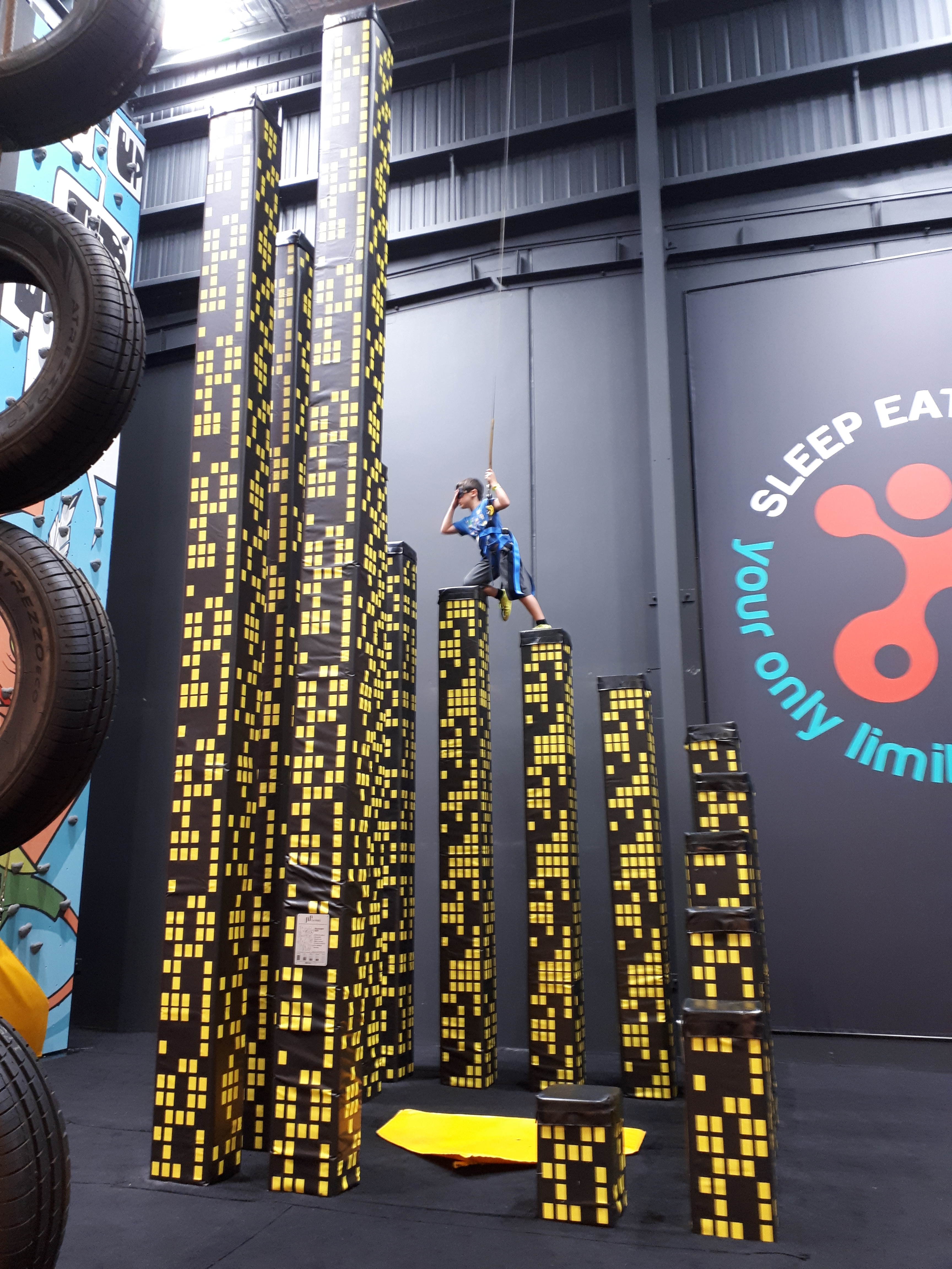 • Open gym – Alex befriended some older boys and created a parkour circuit whilst I made  a fort with Daniel. Once their friends arrived, they all played together.